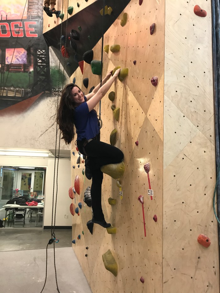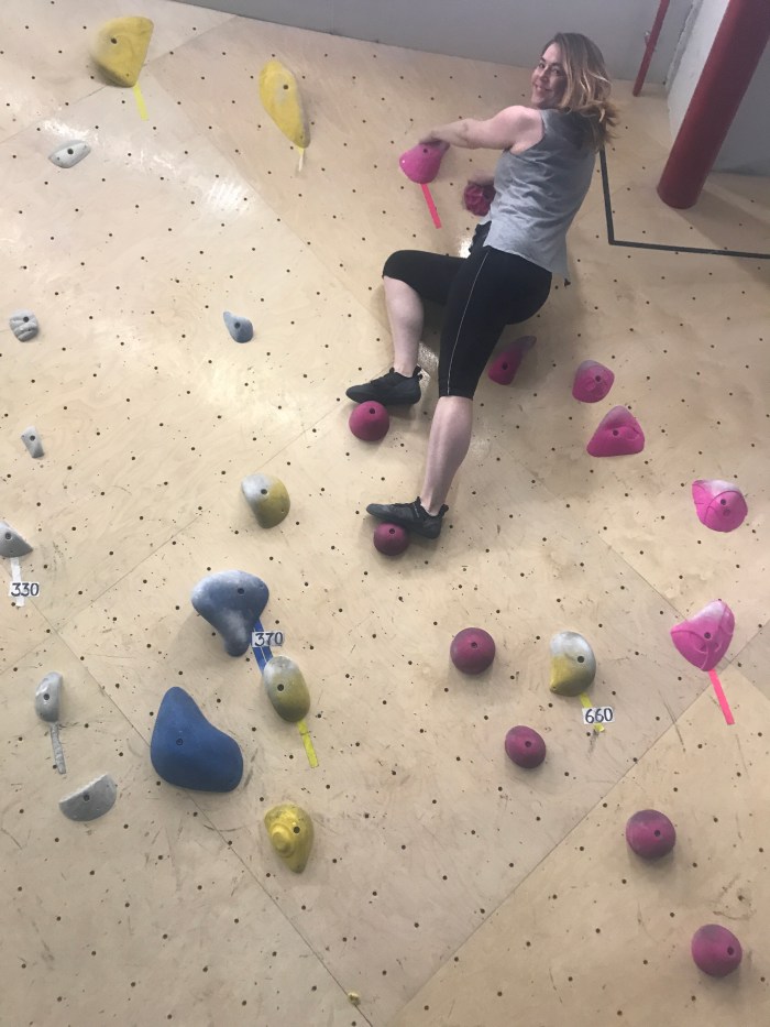 I have a fear of heights and it’s something I’m facing as I get better at scaling the wall. Every climb I feel the push of wanting to reach the final hold and the pull of safe, solid ground below. I hate falling! But it’s exhilarating to solve every new puzzle and progress slowly from V0s and V1s to V2s… and hopefully beyond.