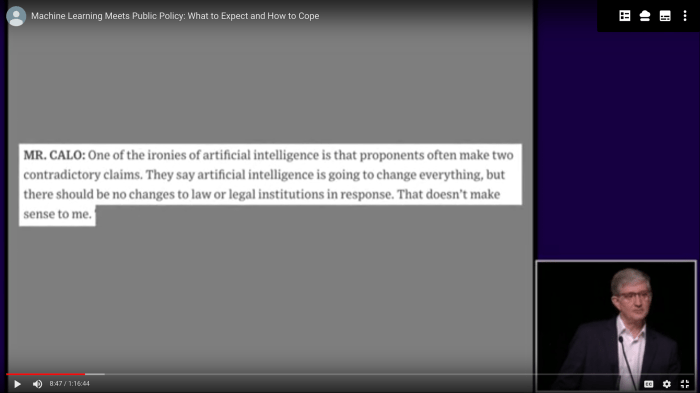 One of the largest AI conferences is NeurIPS, which happens annually in December. I spent some time browsing the presentations from the 2018 conference and found an interesting presentation by Edward W. Felten from Princeton University titled, “Machine Learning Meets Public Policy: What to Expect and How to Cope.”